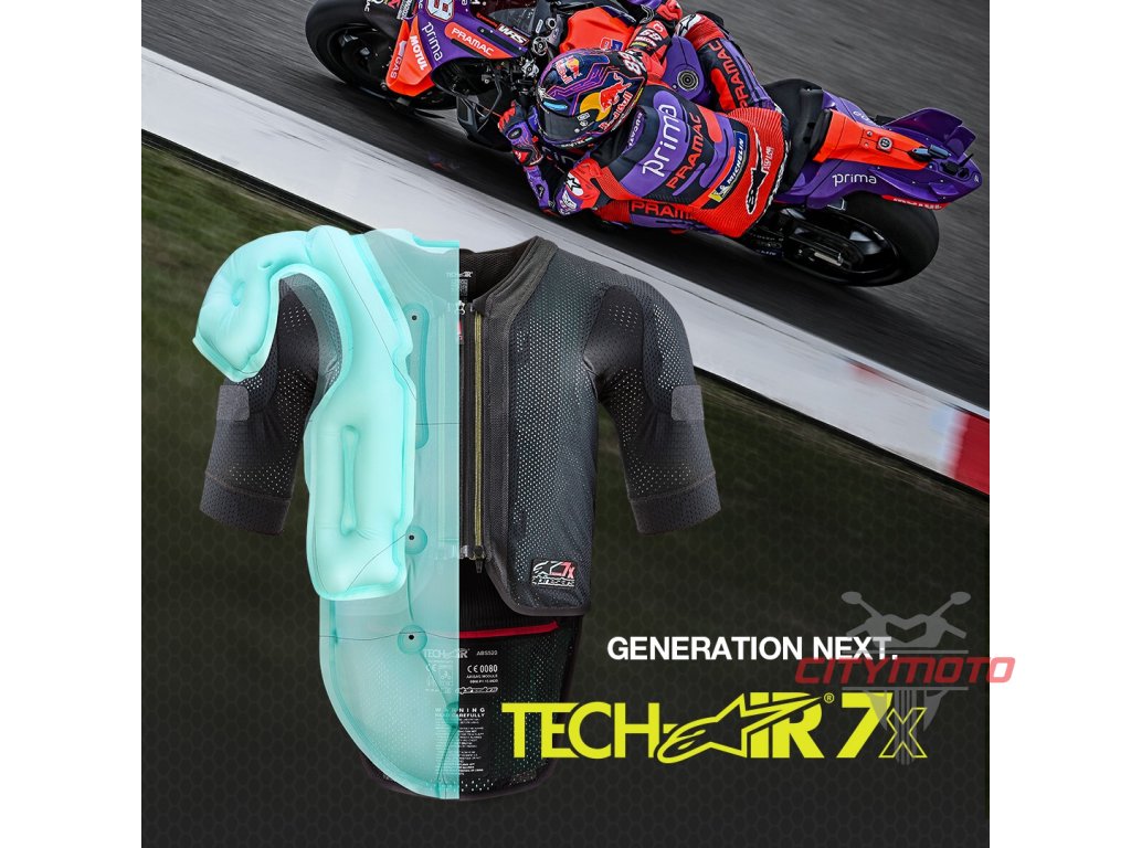 - TECH-AIR®7X představuje evoluci a nejnovější technologické prvky airbagových systémů ALPINESTARS vhodných pro racing segment a okruhové ježdění. Systém je více kompaktní a komfortní pro použití pod vhodnou kombinézu/bundu.