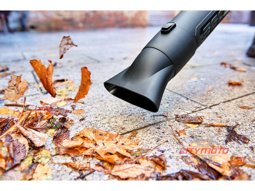 Hezky upravený trávník na podzim v parcích nebo na zahradách většinou zakryje vrstva spadaného listí z okolních stromů. Nebo čisté chodníky zbavené zbytky posečené trávy a jiných nečistot. Ohromné množství tohoto „bioodpadu“ je potřeba efektivně a rychle odstranit. Nechcete ale při úklidu ve městech, areálech nemocnic, škol a dalších institucí citlivých na hlučnost rušit. AKU fukar díky výkonné turbíně a zvýšenému režimu "BOOST" vyfukuje vzduch rychlostí až 313km/h. To je dostatečný výkon pro odklizení spadaného listí z parku nebo pro úklid chodníku od zbytků posečené trávy, prachu a jiných nečistot. Dokonce je schopen spolehlivě "odfouknout" i vrstvu lehkého, čerstvě padlého sněhu z chodníku či parkovacího stání. Pro pohodlnou práci a manipulaci je celý stroj dokonale ergonomicky vyvážen. Velkokapacitní výfukový tubus s možností použití ploché trysky je schopen působit na povrch silou uragánu. Madlo držení je opatřeno bezpečnostní pojistkou, která zaručuje v případě uvolnění okamžité vypnutí stroje. Na rukojeti je umístněn vypínač, který zajišťuje při stisknutí plynulé a postupné spuštění stroje a fixátorem pro aretaci aktuálně nastavené rychlosti. V horní části rukojeti je v dosahu prstu umístěno tlačítko "BOOST". Díky příjemné ovládácí rukojeti potažené měkčenou gumou, je držení fukaru při práci velmi stabilní, bezpečné a pohodlné. Na pohon fukaru lze použít jakoukoliv baterii ze sortimentu EGO a např. baterie 4,0Ah vám umožní pracovat nepřetržitě od 14 min v režimu "BOST" až do 120 minut v nízkém režimu. Naše lithiové baterie EGO Power+ 56V Arc Vám poskytnou dostatek energie pro pohon dostatečně výkonného a účinného bezuhlíkového elektromotoru s přímým náhonem na turbínu. Stroj je mimořádně tichý. Žádná napájecí šňůra, žádné provozní náplně, žádný hluk, žádný zápach. Nízká hmotnost, pohodlný úchop a snadná manipulace dělají z tohoto "tryskáče" vynikajícího pomocníka jak do domácnosti, tak i do firmy a komunálních služeb.