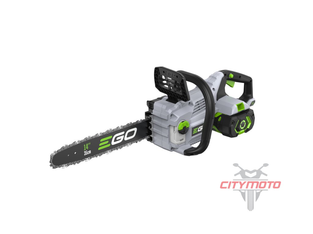 Pro lehkou a přesnou práci a manipulaci je celá pila dokonale ergonomicky vyvážena. Kratší lišta v celkové délce 35cm poskytuje pile mimořádnou ovladatelnost. Madlo držení je opatřeno bezpečnostní pojistkou, která zaručuje v případě uvolnění okamžité vypnutí stroje. Na rukojeti je umístněn vypínač, který zajišťuje při stisknutí plynulé a postupné spuštění stroje. Díky příjemné ovládácí rukojeti je držení pily při práci velmi stabilní, bezpečné a pohodlné a stroj je vhodný pro jakékoliv zahradnické práce v domácím použití. Pomocí "semi-automatic" zařízení je napínání pilového řetězu velmi jednoduché a není potřeba žádného nářadí. Ztrátové mazání řetězu je zde plně automatické a díky spolehlivému olejovému čerpadlu je podáváno příslušné množství mazacího oleje přímo do vodící drážky lišty. Díky konstrukci lišty a posuvu řetězu se dopraví každá kapka mazacího oleje přesně tam kde je to nutné. Pro kontrolu hladiny mazacího oleje je pila opatřena kontrolním olejoznakem. Na pohon pily lze použít jakoukoliv baterii ze sortimentu EGO a např. baterie 2,5Ah vám umožní uskutečnit až 130 řezů a s baterií 5,0Ah až 300 řezů. Naše lithiové baterie EGO Power+ 56V Arc Vám poskytnou dostatek energie pro pohon dostatečně výkonného a účinného bezuhlíkového elektromotoru s přímým náhonem na řetězku. Díky externímu umístění baterie mimo kapotáž pily je baterie efektivněji ochlazována a je schopna efektivněji napájet motor pily. Pila je mimořádně tichá a sousedé Vás při práci ani neuslyší. Žádná napájecí šňůra, žádné provozní náplně (kromě oleje pro mazání řetězu), žádný hluk, žádný zápach a minimální údržba. Nízká hmotnost, pohodlný úchop a snadná manipulace dělají z této řetězové pily vynikajícího pomocníka do každé chalupy.