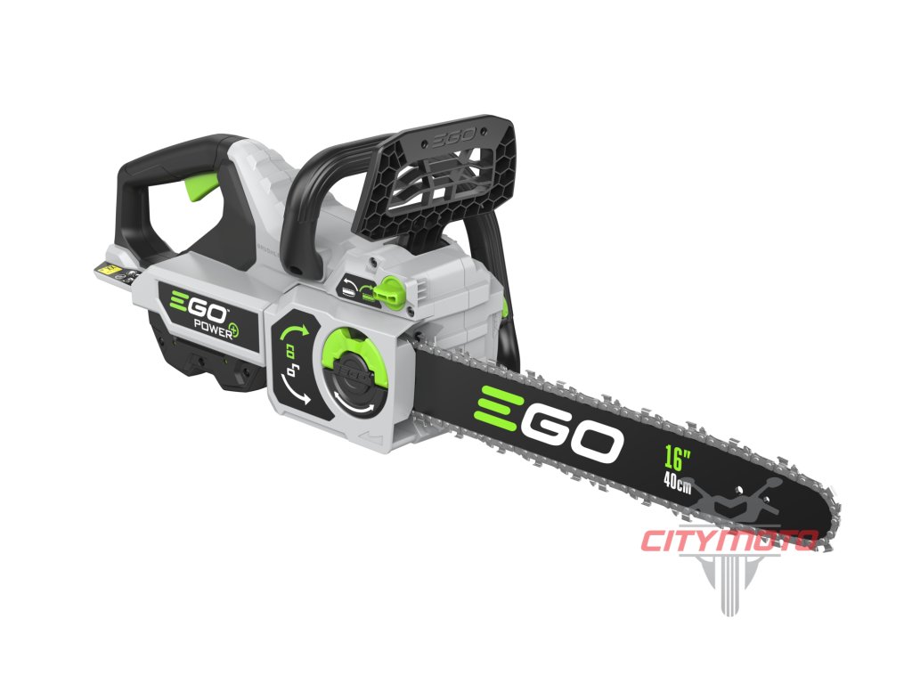 Pro lehkou a přesnou práci a manipulaci je celá pila dokonale ergonomicky vyvážena. Lišta v celkové délce 40cm poskytuje pile mimořádnou schopnost si poradit i s rozměrnějším kmenem. Madlo držení je opatřeno bezpečnostní pojistkou, která zaručuje v případě uvolnění okamžité vypnutí stroje. Na rukojeti je umístněn vypínač, který zajišťuje při stisknutí plynulé a postupné spuštění stroje. Díky příjemné ovládácí rukojeti a dobrému vyvážení je držení pily při práci velmi stabilní, bezpečné a pohodlné a stroj je vhodný pro jakékoliv zahradnické práce v domácím použití. Pomocí zařízení pro rychlonapínání řetězu je napínání pilového řetězu velmi jednoduché a není potřeba žádného nářadí. Po uvolnění rozměrné upínací matice lišty je možné rychle a jednoduše napnout pilový řetěz nad ním umístěným stavěcím kolečkem. Mazání řetězu je zde plně automatické a díky spolehlivému olejovému čerpadlu je podáváno příslušné množství mazacího oleje přímo do vodící drážky lišty. Díky konstrukci lišty a posuvu řetězu se dopraví každá kapka mazacího oleje přesně tam kde je to nutné. Pro kontrolu hladiny mazacího oleje je pila opatřena kontrolním olejoznakem. Na pohon pily lze použít jakoukoliv baterii ze sortimentu EGO a např. baterie 2,5Ah vám umožní uskutečnit až 130 řezů a s baterií 5,0Ah až 300 řezů. Naše lithiové baterie EGO Power+ 56V Arc Vám poskytnou dostatek energie pro pohon dostatečně výkonného a účinného bezuhlíkového elektromotoru s přímým náhonem na řetězku. Díky externímu umístění baterie mimo kapotáž pily je baterie efektivněji ochlazována a je schopna efektivněji napájet motor pily. Pila je mimořádně tichá a sousedé Vás při práci ani neuslyší. Žádná napájecí šňůra, žádné provozní náplně, žádný hluk, žádný zápach. Nízká hmotnost, pohodlný úchop, snadná manipulace a především vysoká řezná rychlost dělají z této řetězové pily vynikajícího pracanta nejenom na chalupě, ale i v rukou profesionála tesaře nebo pracovníka údržby komunální zeleně.