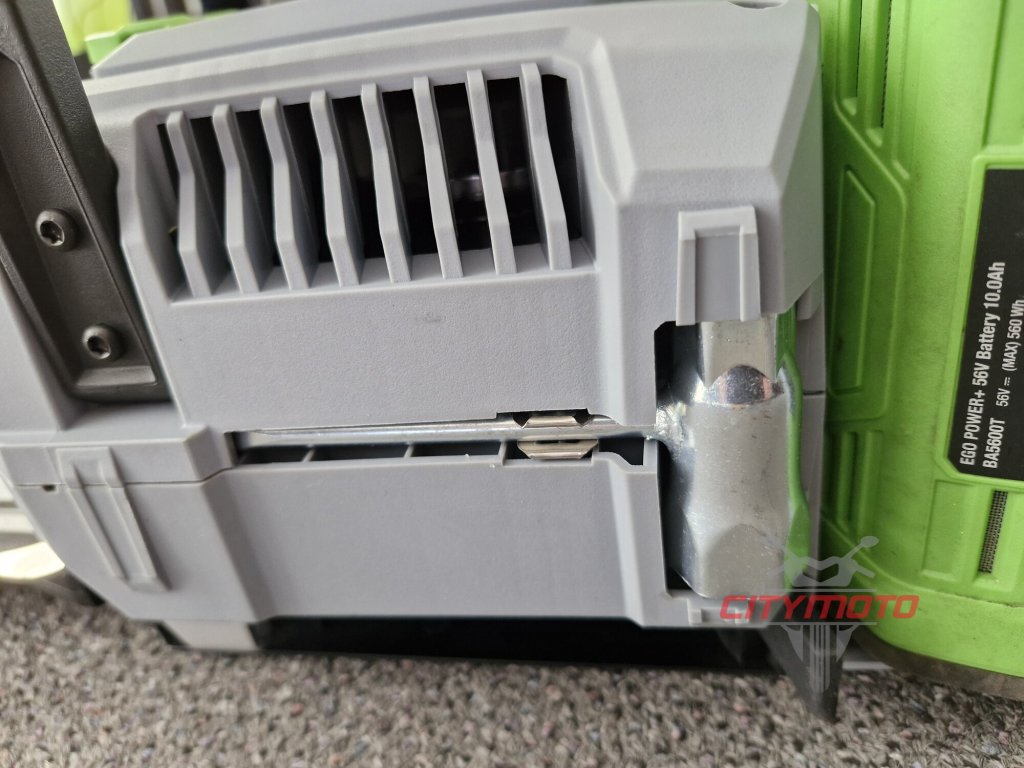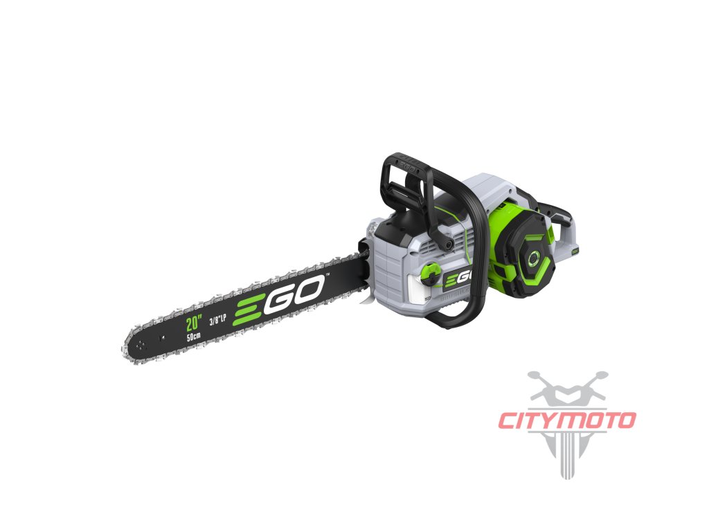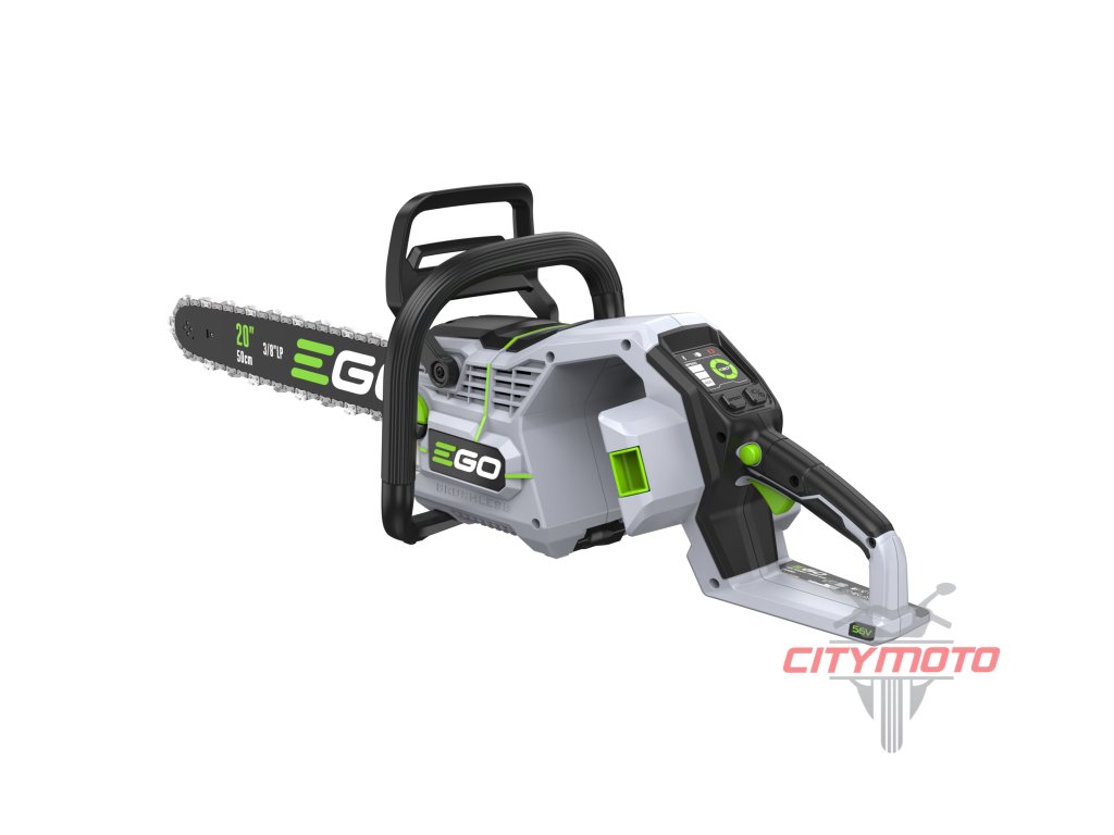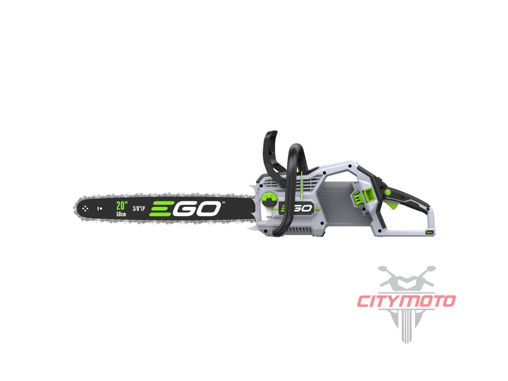 Pro lehkou a přesnou práci a manipulaci má pila posunuto těžiště co nejblíže rukojeti a celá pila je dokonale ergonomicky vyvážena. Lišta v celkové délce 50cm, popř. 45 nebo 40cm poskytuje pile mimořádnou schopnost si poradit i s rozměrnějším kmenem. Madlo držení je opatřeno bezpečnostní pojistkou, která zaručuje v případě uvolnění okamžité vypnutí stroje. Na rukojeti je umístněn vypínač, který zajišťuje při stisknutí plynulé a postupné spuštění stroje. Příjemné ovládácí rukojeti umožňují držení pily při práci velmi stabilní, bezpečné a pohodlné a stroj je vhodný pro jakékoliv práce v domácím použití. Díky velikosti a hmotnosti je pila vhodná na dělení již položených kmenů. Výkonné LED světlo vám dokonale osvětlí pracovní prostor. Mazání řetězu je zde plně automatické a díky spolehlivému olejovému čerpadlu je podáváno příslušné množství mazacího oleje přímo do vodící drážky lišty. Konstrukci lišty a posuv řetězu dopraví každou kapku mazacího oleje přesně tam kde je to nutné. Pro kontrolu hladiny mazacího oleje je pila opatřena kontrolním olejoznakem. Na pohon pily lze použít jakoukoliv baterii ze sortimentu EGO. Naše lithiové baterie EGO Power+ 56V Arc Vám poskytnou dostatek energie pro pohon dostatečně výkonného a účinného bezkomutátorového elektromotoru s přímým náhonem na řetězku. Díky vysokým odběrům pod maximální zátěží doporučujeme používat baterii EGO s kapacitou min. 6Ah, což je dostatečná zásoba energie 336Wh k tomu, aby zvládla dlouhodobě a spolehlivě napájet takto výkonou pilu. Externí umístění baterie mimo kapotáž pily zaručí lepší ochlazování a tím efektivnější napájení pily. Pila je mimořádně tichá a sousedé Vás při práci ani neuslyší. Jako vynikající nápad se zdá být umístění "T" klíče na demontáž lišty a napínání řetězu na spodní ploše tělesa pily. Žádná napájecí šňůra, žádné provozní náplně, žádný hluk, žádný zápach. Nízká hmotnost, pohodlný úchop a snadná manipulace dělají z této řetězové pily vynikajícího pracanta nejenom na chalupě, ale i v rukou lesníka, hasiče, silničáře nebo pracovníka údržby komunální zeleně.