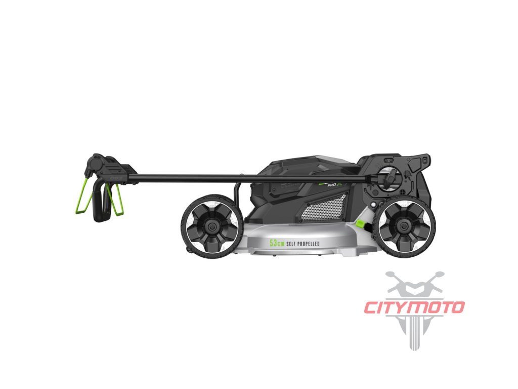 Model EGO PRO X LMX 5300E-SP - extrémně odolná zahradní akumulátorová sekačka, záběr sečení 53cm, podvozek odlitý z hliníkové slitiny, variabilní pojezd, objem sběrného koše 85L, výškově nastavitelná pevná a pohodlná rukojeť dělají z tohoto modelu mimořádně odolný stroj. A hlavně mimořádně silný elektromotor dělá z tohoto stroje opravdu zdatného "likvidátora" travního porostu v profesionálním pojetí.