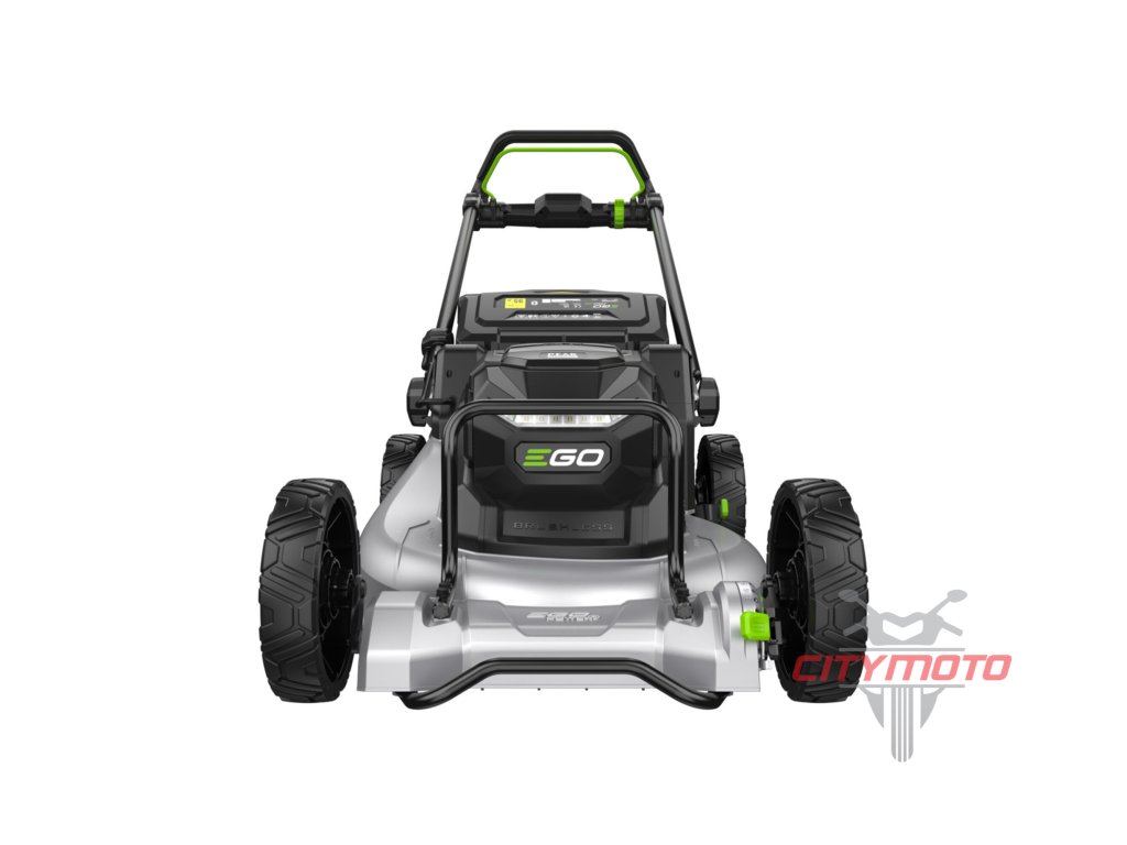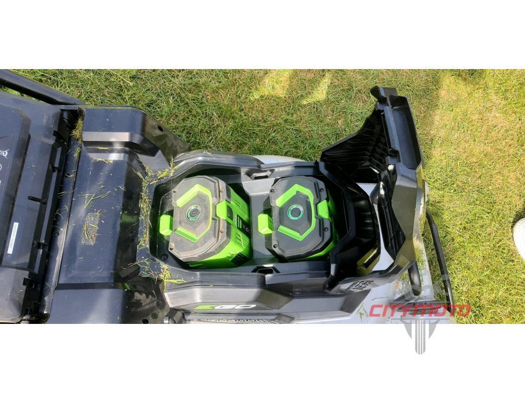 Výkonný, bezuhlíkový elektromotor je opatřen elektronickou regulací výkonu, která automaticky reaguje na míru zatížení a motor vždy uvede do optimálních otáček sekání. Je tak zajištěna neustálá kontrola nad kvalitou sekání a znatelně se tak prodlužuje doba chodu sekačky na jedno nabití baterií. Do bateriového lože se vkládají 2 baterie o zvolené kapacitě v závislosti na požadovaném plošném výkonu sekačky. Max. kapacita je 2x12Ah, což je zásoba energie na posekání cca 3.000 m2. Rovnoměrný odběr z baterií a nabíjení, nehledě na jejich velikost, neustále hlídá a reguluje patentovaná technologie EGO, nazvaná "Peak PowerTM". Jakoukoliv baterii, kterou máte v sekačce můžete kdykoliv vyjmout a použít pro napájení jakéhokoliv dalšího stroje z nabídky EGO.