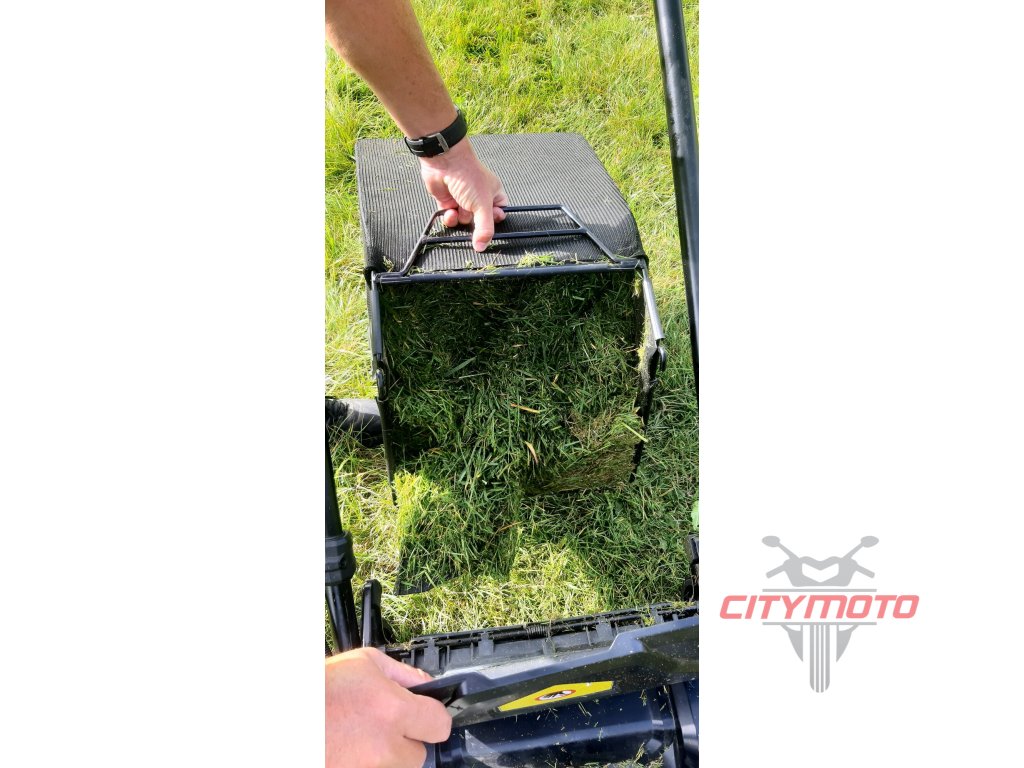Za příplatek lze sekačku opatřit mulčovacím nožem a mulčovací záslepkou, které ještě zefektivňují, již tak dobré, mulčovací schopnosti sekačky. Naprostou novinkou na trhu, nejen AKU sekaček, je způsob výhozu trávy při sekání bez nasazeného sběrného koše. Ochranný deflektor v tomto případě nesměřuje trávu směrem dolů pod nohy obsluhy, ale směrem do strany vlevo po směru jízdy. Nejen, že uživatel nemá na své obuvi nános posekané trávy, ale ani nehrozí případné vymrštění pevného předmětu sekačkou pod nohy obsluhy. Automatická variabilní rychlost s plynulou regulací jízdy poskytuje optimální rychlost sekání tak, aby se maximálně využila kapacita baterií a prodloužila se doba provozu sekačky při zachování výkonu sečení trávy.