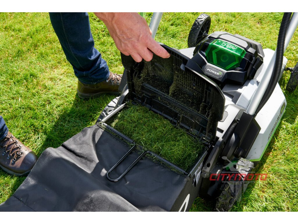 Model EGO LM 2130E-SP - Záběr sečení 52cm, podvozek s centrálním nastavením výšky sečení a plynule proměnlivý pojezd, objem sběrného koše 70L, teleskopická a výškově nastavitelná pohodlná rukojeť dělají z tohoto modelu mimořádně komfortní stroj. A hlavně dva sekací nože dělají z tohoto stroje opravdu zdatného "likvidátora" travního porostu.