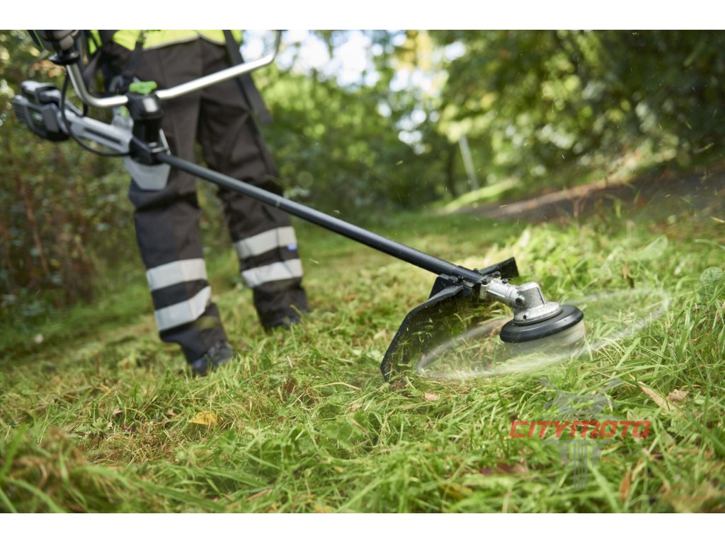 EGO Power+ Professional X křovinořez BCX3800E - Plně profesionální, výkonný křovinořez se záběrem žací struny 38cm nebo ocelového kotouče o ∅ 30cm a variabilním ovládáním rychlosti otáček. Vysoký výkon, odolnost vůči zátěži, snadná manipulace a dokonalá vyváženost umožní pracovníkovi komunálních služeb efektivně a bez hluku a zápachu "zkrotit" trávník nebo posekat vysokou trávu, nálety a křoviny na větších plochách kam se nedostane kolová sekačka. Plnohodnotný křovinořez se silným bezuhlíkovým elektromotorem umístěným nahoře náhonového tubusu z karbonových vláken a náhonem ocelovou hřídelí, ovládacími řidítky, dvojitým ramenním postrojem s bezpečnostní karabinou, poloautomatickou žací strunovou hlavou a ocelovým žacím kotoučem v základní výbavě.