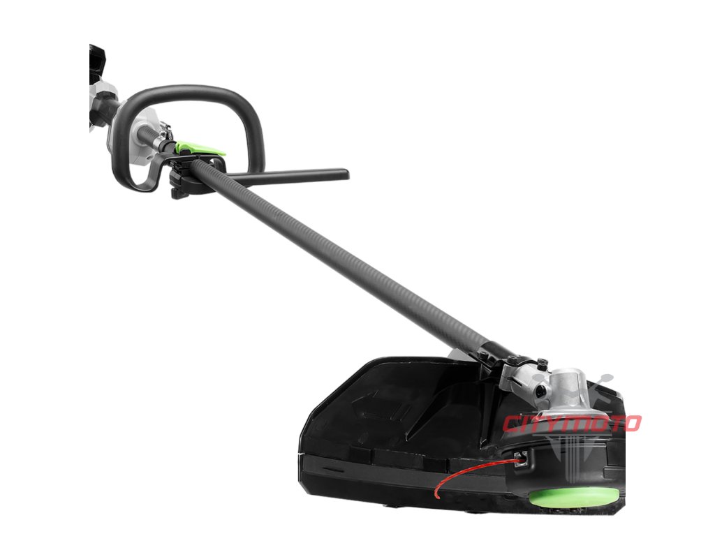 EGO Power+ Professional X křovinořez STX3800 - Plně profesionální, výkonný křovinořez se záběrem žací struny 38cm nebo ocelového kotouče o ∅ 30cm a variabilním ovládáním rychlosti otáček. Vysoký výkon, odolnost vůči zátěži, snadná manipulace a dokonalá vyváženost umožní pracovníkovi komunálních služeb efektivně a bez hluku a zápachu "zkrotit" trávník nebo posekat vysokou trávu, nálety a křoviny na větších plochách kam se nedostane kolová sekačka. Plnohodnotný křovinořez se silným bezuhlíkovým elektromotorem umístěným nahoře náhonového tubusu z karbonových vláken a náhonem ocelovou hřídelí, ovládacím obloukovým madlem, dvojitým ramenním postrojem s bezpečnostní karabinou, poloautomatickou žací strunovou hlavou a ocelovým žacím kotoučem v základní výbavě.