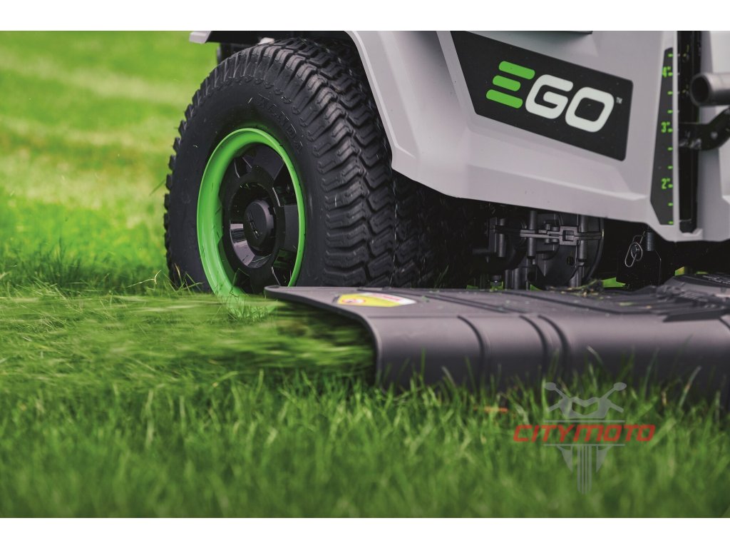 Model EGO Z6, ZT5201E-L - je prvním modelem Aku rideru na trhu s nulovým poloměrem zatáčení a záběrem sekání 132cm. Síla od spolehlivých a výkonných elektromotorů je na pojezdová zadní kola předávána a plynule dávkována prostřednictvím variabilního elektropojezdu. Pro napájení téhle mašiny slouží až 6 ks EGO Power+ 56V ARC Lithiových baterií „portálové“ konstrukce.