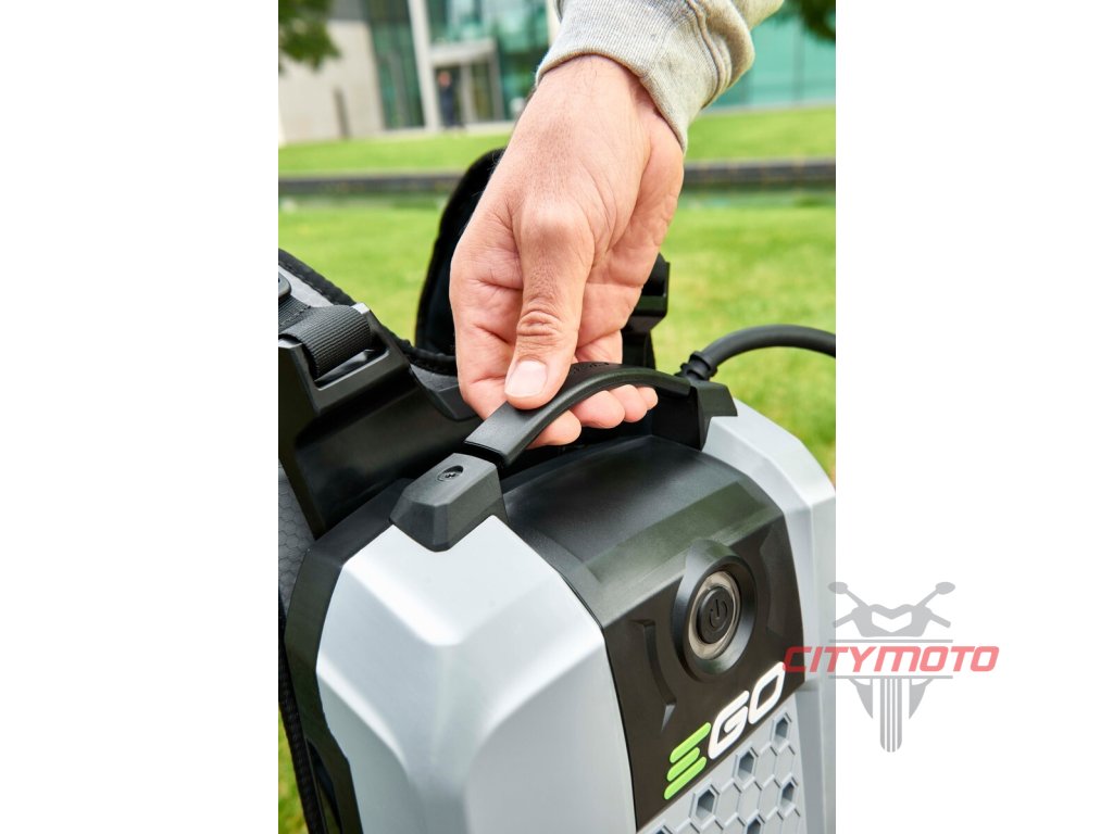 Konstrukce EGO Power+ Professional X velkokapacitních zádových baterií zajišťuje dokonalé chlazení a teplotní vyváženost jak při práci, tak i při nabíjení. Ani dávkování výkonu baterie u nás není mimo kontrolu. Lithiová baterie EGO Power+ Professional X je nepřetržitě monitorována a řízena softwarem a mikroprocesory uvnitř baterie. Inteligentní balancer konstantně monitoruje a optimalizuje každý článek samostatně a stav je zobrazován na čitelném displeji, takže je vždy dosaženo maximálního výkonu a pracovní doby. Baterie BAX1500 disponuje využitelnou energií 1568Wh a je určena ryze pro profesionální využití. Pro nabíjení je nutné použít inteligentní EGO Power+ Professional X nabíječku CHX5500E. Stav baterie je neustále monitorován a zobrazován světelnými LED diodami. Pro použití baterie je nutné dokoupit profesionální nosný postroj AFH1500, díky kterému nepocítíte únavu ani při dlouhodobé práci v terénu. Propojení se strojem je zajištěno vysokonapěťovým ohebným kabelem a případně adaptérem ADB1000. Baterie BAX1500 konstrukčně odpovídá třídě krytí IP56, což v praxi znamená celkovou vodotěsnost. Na batrii je umístěn také USB konektor a 12V zásuvka s možností nabíjení veškerého zařízení pomocí USB kabelu či vhodného konektoru. Baterie BAX1500 je určena ryze pro řadu strojů EGO Power+ Professional X, určenou pro profesionály - specialisty na údržbu veřejné zeleně.