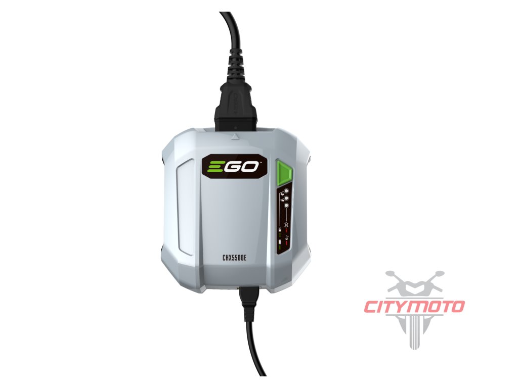 Nabíječka je napájena ze standardní elektrické sítě 230V/50Hz, poskytuje výkon 550 W a splňuje veškeré bezpečnostní požadavky, kladené na takovéto elektrozařízení a je určena ryze pro řadu strojů EGO Power+ Professional X, určenou pro profesionály - specialisty na údržbu veřejné zeleně.