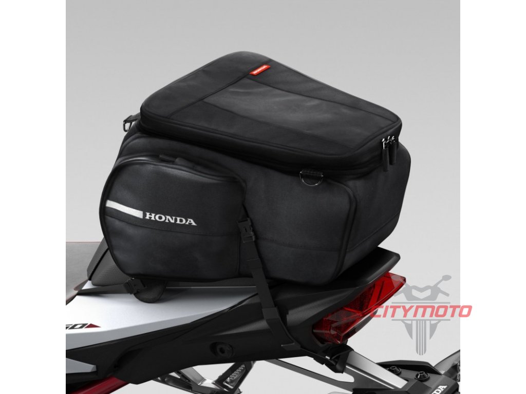 Funkční zadní taška speciálně přizpůsobená zúženému tvaru zadního sedadla. Objem 15 l lze rozšířit na 22 l. Montážní sada umožňuje snadné připevnění a dokonalou stabilitu na motocyklu. Obsahuje ochrannou fólii, která chrání kapotáž před poškrábáním. Rozměry v mm (š x d x v): 355 x 365 x 243 Sada obsahuje: • Taška na zadní sedadlo (08L73-MKJ-D00) • Montážní sada tašky (08L70-MKP-T00) • Ochranná fólie (08P71-MLB-D00) |