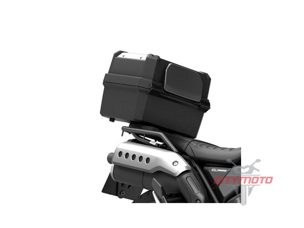 Sada obsahuje kompletní horní kufr s nosičem a deskou nosiče kufru, vložkou zámku a zámkem pro ovládání klíčem od motocyklu.