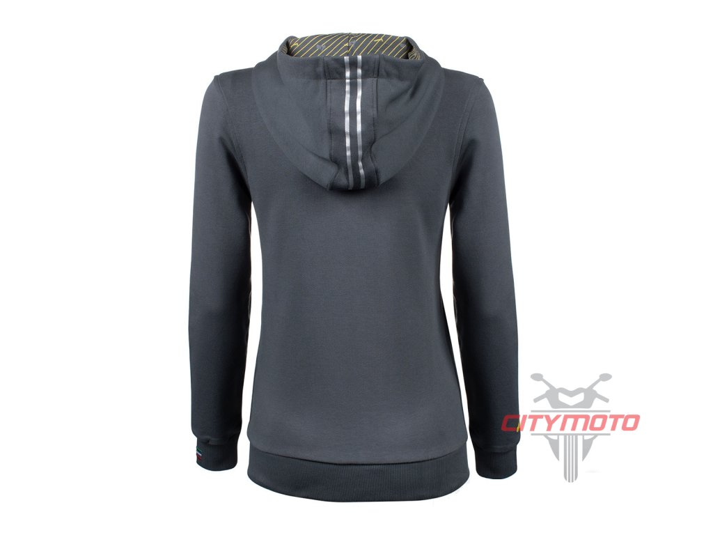 S elegantní mikinou "GRAPHIC" navrhl tým módních návrhářů Vespa naprosto přitažlivý kus ležérního oblečení, který stejnou měrou přináší styl, pohodlí a radost každému jezdci na Vespě. Vesta s kapucí, vyrobená z vysoce kvalitní bavlny, je pro něj i pro ni k dispozici v šedé verzi. Levá část hrudi zdobí reflexní nápis Vespa, pravé zápěstí má natištěný obrys Primavery a levé zápěstí je vyšité barvami italské vlajky, aby byl design ještě působivější. Našitý reflexní prvek na kapuci zajišťuje lepší viditelnost při nošení svetru v nesprávném směru. Kapuce je navíc na vnitřní straně podšitá vzorovanou tkaninou.