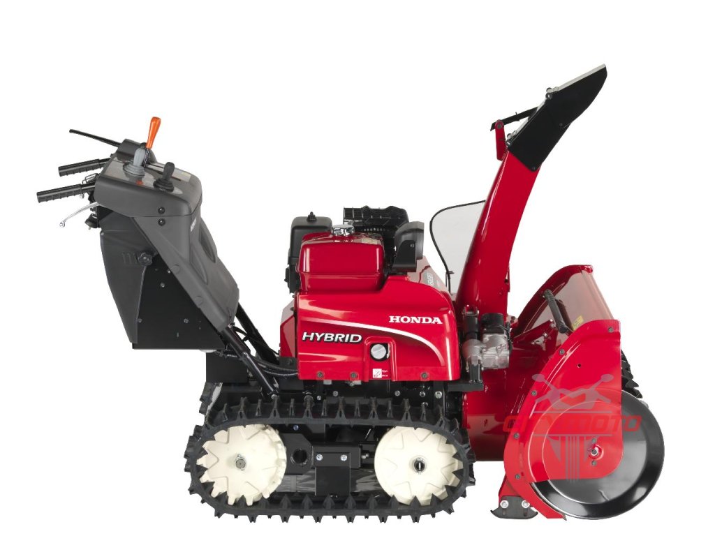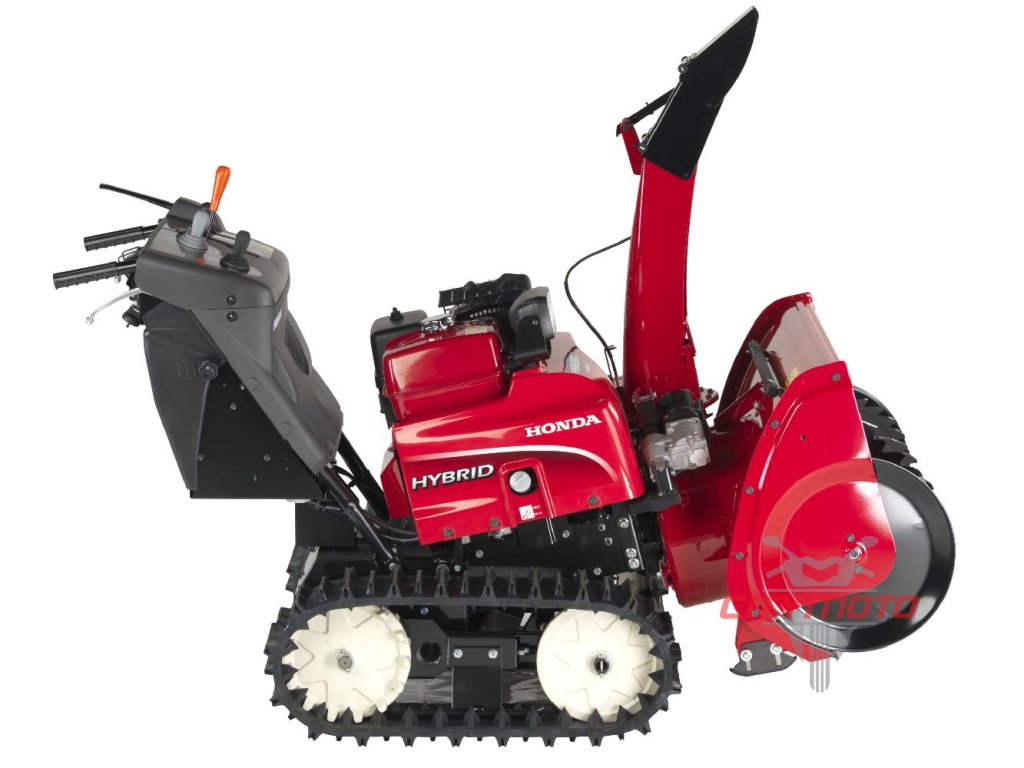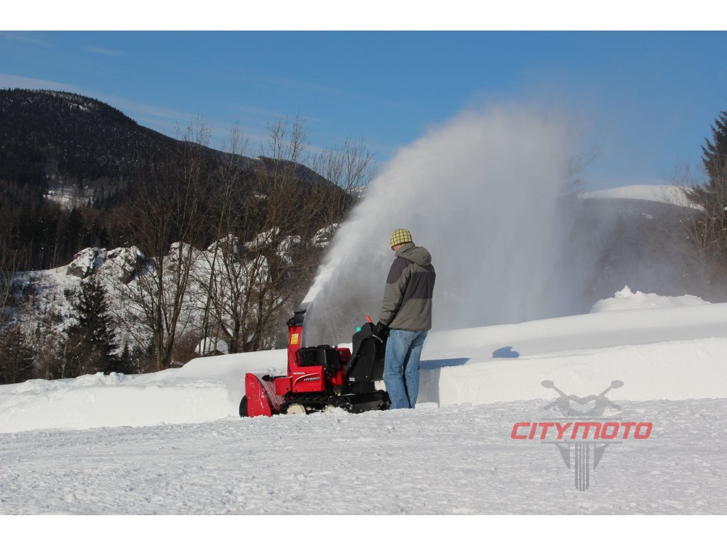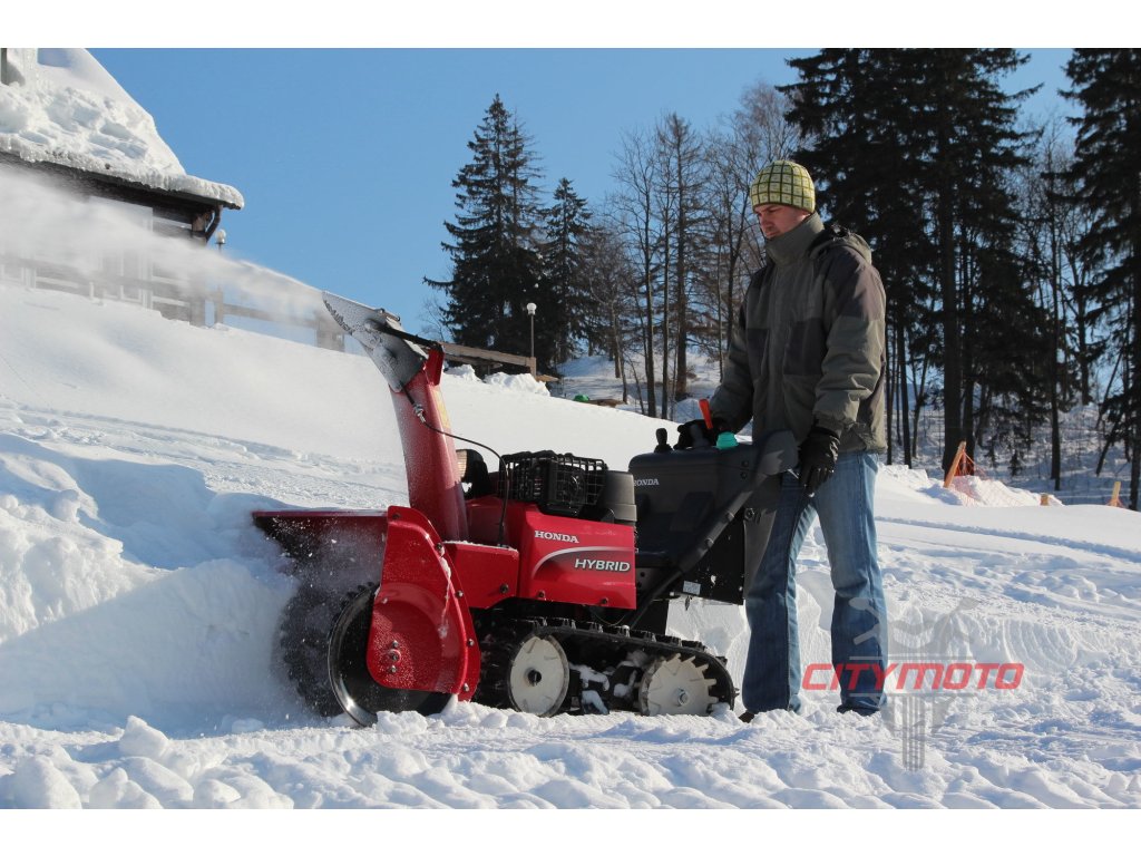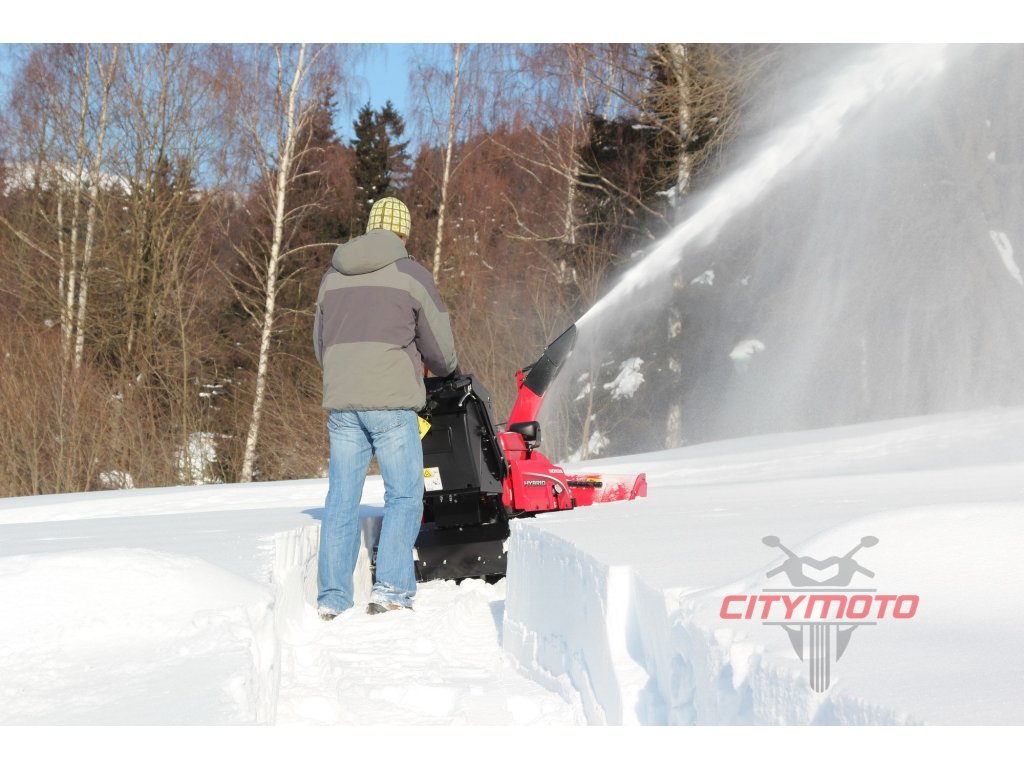 Hybridní pohon spočívá v kombinaci spalovacího motoru s elektrickým pojezdem. Motor Honda iGX s přehledem plní poměrně přísnou emisní normu EURO 5, disponuje elektronickou řídící jednotkou s automatickou regulací otáček v závislosti na zvoleném pracovním režimu. Tím, že jeho hlavní zátěží je přímý náhon 80 cm širokého frézovacího mechanizmu, má ohromnou rezervu výkonu na to, aby hravě zvládl zpracovat a odhodit až 83 tun sněhu za hodinu do vzdálenosti až 19 m. Výškově nastavitelný otevřený frézovací mechanizmus s bočními disky ovládaný z panelu obsluhy se přizpůsobí jakýmkoliv výškovým terénním nerovnostem a zakrojí se i do těžkého a zmrzlého sněhu. Do sněhové závěje frézu posouvají pojezdové pásy, které mají vynikající trakční schopnost a výbornou prostupnost terénem, dobře drží stopu při úklidu sněhu ve svahu, nepoškozují povrch a stroj je pořád dostatečně obratný pro to, aby se mohl pohybovat i na méně přístupných a menších místech nebo v blízkosti zaparkovaných automobilů. Rychlost pojezdu jak vpřed, tak i vzad se ovládá pákou na ovládacím panelu naprosto plynule bez výkyvů rychlosti jízdy. Díky unikátní technice fréza disponuje možností otáčení na místě (pásy jdou proti sobě) a pojíždění lze provádět bez nastartovaného motoru – pouze na baterie. Při couvání se frézovací komora zvedne a při jízdě vpřed se automaticky zase vrátí do původní výšky. Z garáže vyjedete pouze na elektropohon naprosto nehlučně a až na místě frézování nastartujete motor otočením klíčku zapalování jako v automobilu. Komfort ovládání je na maximální možné míře pomocí rozměrných ovladačů a tlačítek, přehledně uspořádaných na ovládacím pultu stroje tak, aby bylo možné je obsluhovat i v rukavicích. Pro majitele parkovišť, lyžařských areálů, hotelů, ubytoven, penzionů a jiných firem, kteří potřebují spolehlivě a rychle odklízet velké množství sněhu z velkých ploch nenajdou na trhu lepší a výkonnější stroj. Ovládání je velmi snadné, naprosto fyzicky nenáročné a fréza pracuje samostatně, přesně podle pokynů obsluhy.