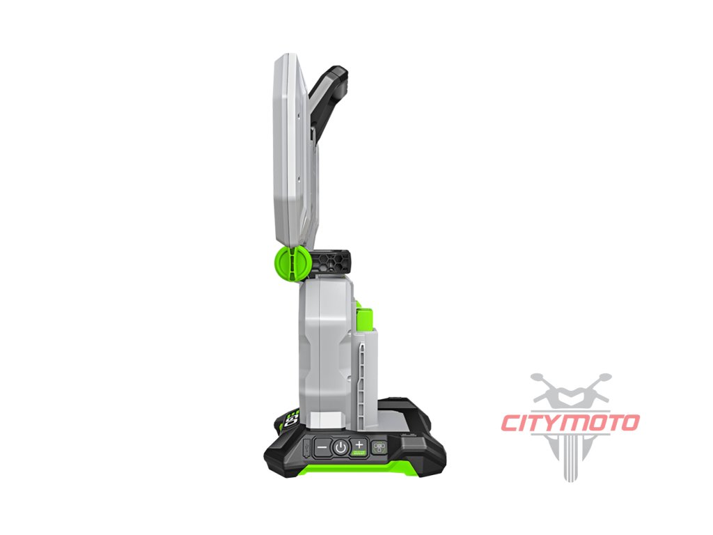 K tomu výborně poslouží lehké, přenosné a výkonné LED osvětlení, rovněž napájené jakoukoliv baterií EGO. Jednotlivé panely jsou osazeny LED (Light Emitting Diode) diodami, které jsou pověstné svojí vysokou svítivostí, energetickou nenáročností a hlavně dlouhou životností, která se udává v desítkách tisíc hodin svícení. Světelný výkon lze nastavit v 5-ti různých intenzitách, od 600 až po 10.000 lumenů. Kompaktní design umožňuje osvětlení směrově nakonfigurovat dle libosti a ve složeném stavu s integrovanou rukojetí lze snadno uchopit a jít. Celé zařízení totiž váží necelých 4,5kg bez baterie. Osvětlovací těleso lze zavěsit za integrovaný závěs, nebo jej ustavit na stabilní podstavec a díky naklápěcím panelům lze osvítit prostorv rozsahu 360°. Použití je možné jak v interiéru, tak i venku. Mimochodem, podstavec je opatřen i výstupem USB-A pro případné dobití např. telefonu. Flexibilitu, výkon a kompaktní rozměry ocení především cestovatelé v kempech, přírodě, rybáři a všichni, kdo potřebují svítit, aniž by hlukem obtěžovali své okolí.