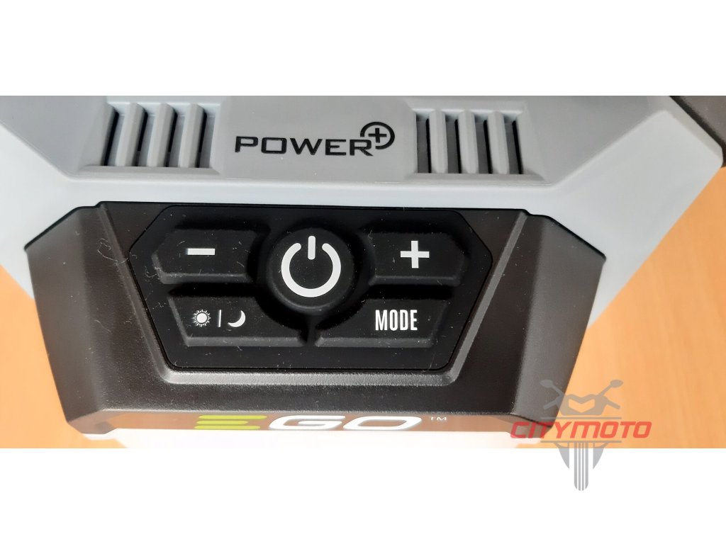 K tomu výborně poslouží lehké, přenosné a výkonné LED osvětlení, rovněž napájené jakoukoliv systémovou baterií EGO. Čelní panel se 3 řadami po 5ti a boční panely s 1 řadou po 5ti LED (Light Emitting Diode) diodami disponují několika řežimy výkonu a odstínu světla a prostorového osvětlení. LED diody jsou pověstné svojí vysokou svítivostí, energetickou nenáročností a hlavně dlouhou životností, která se udává v desítkách tisíc hodin svícení. Světelný výkon lze nastavit v 5-ti různých intenzitách, od 600 až po 3.000 lumenů. Toto světlo EGO rovněž disponuje možností výběru z 5ti odstínů, nebo-li „teploty“ světla od 2500K do 5000K (od "teplého", oranžového přes žluté až po ostře bílé, "chladné" světlo) pro lepší přizpůsobení se okolnostem použití. Kompaktní rozměry osvětlovacího tělesa umožňují jej zavěsit za integrovaný závěs, nebo jej ustavit na stabilní stativ. USB-C port umožňuje napájení nebo nabíjení jiného elektronického zařízení, např. mobilu nebo tabletu. Celé zařízení totiž váží necelých 1,8 kg bez baterie. Použití je možné jak v interiéru, tak i venku. Veškeré nastavení lze ovládat mobilním telefonem pomocí EGO Connect aplikace přes Bluetooth rozhraní. Flexibilitu, výkon a kompaktní rozměry ocení především cestovatelé v kempech, přírodě, rybáři a všichni, kdo potřebují svítit, aniž by hlukem obtěžovali své okolí.