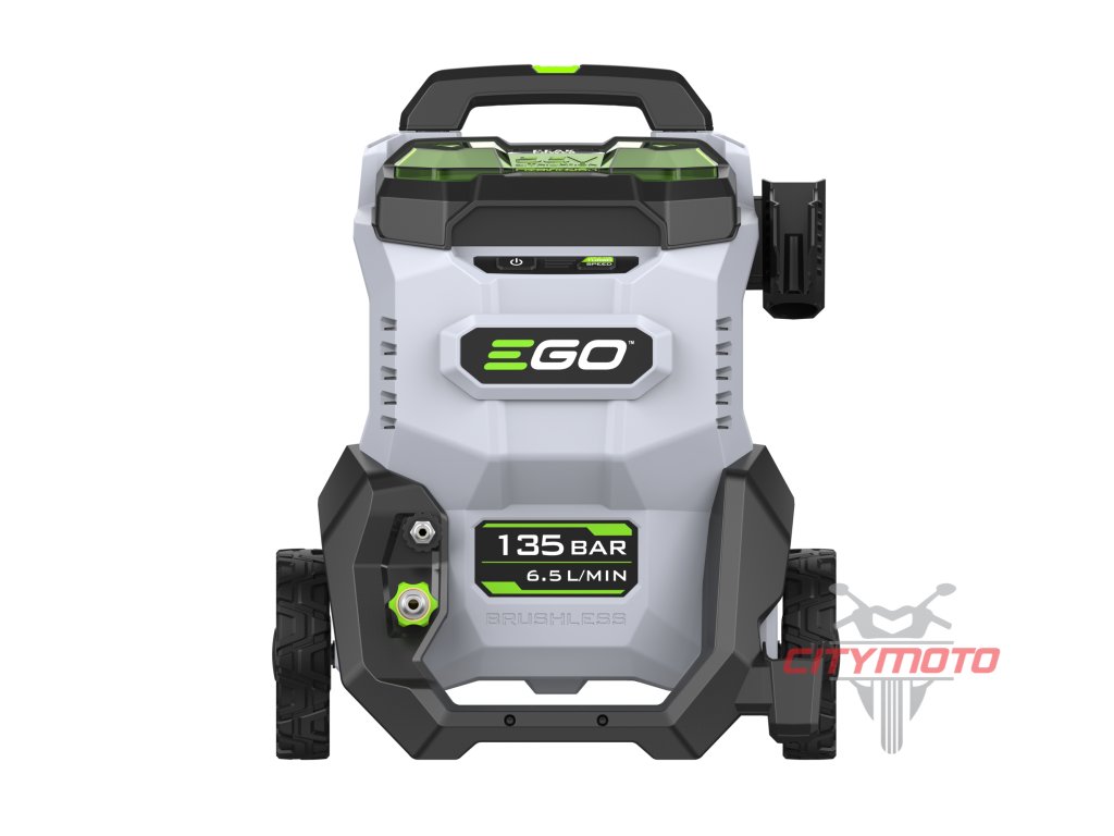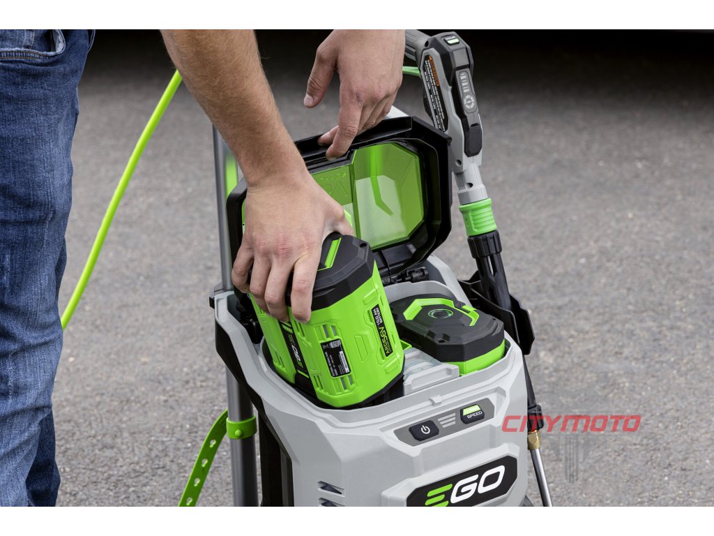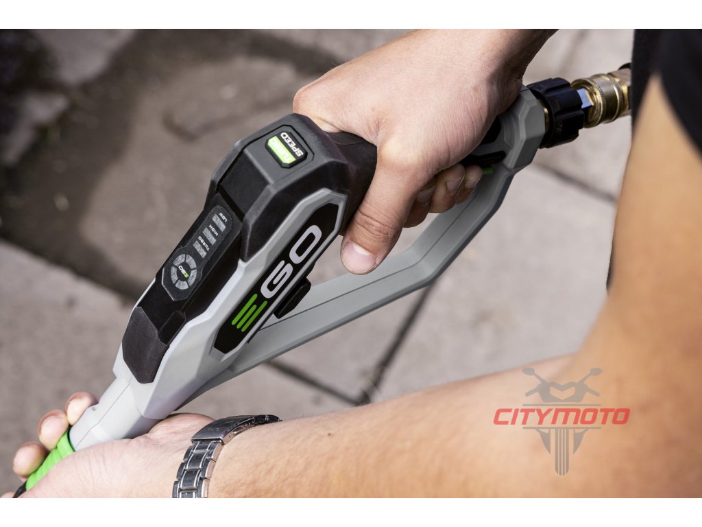 Ke své činnosti totiž nepotřebuje ani zásuvku, ani vodovodní přípojku. Vodu si totiž sama nasaje z jakéhokoliv volného zdroje vody, což může být např. zahradní sud s dešťovkou, obyčejný kanystr nebo prostě z jakákoliv nádrž s vodou. O napájení se postará dvojice baterií. Rovnoměrný odběr z baterií, nehledě na jejich velikost, neustále hlídá a reguluje patentovaná technologie EGO, nazvaná Peak Power™. Baterii, kterou máte v tlakové myčce můžete také kdykoliv vyjmout a použít pro napájení jiného stroje z nabídky EGO. Potřebný výkon pro pohon kovového čerpadla poskytne bezkomutátorový elektromotor, který natlakuje vodní paprsek až na 135 barů a průtok vody až 390 l/h. Tlak vody navíc můžete plynule regulovat dle typu čištěného povrchu. Na usazenou špínu na zámkové dlažbě platí jednoznačně plná síla a max. tlak vodního paprsku, na lak vašeho automobilu nebo zabláceného motocyklu je však vhodnější nižší tlak vody. Stroj je dodáván se sadou různých trysek, kdy každá tryska se hodí na čištění určitého povrchu. Dokonalý výsledek zajistí čisticí prostředek, který můžete na povrch nanést pomocí důmyslného aplikátoru a poté opláchnout tlakovou vodou. Všechny hadicové konektory jsou bajonetového typu. Po skončení úklidu vše odpojíte jediným pohybem a myčku snadno uskladníte i na malém prostoru. Kompaktní design s teleskopickou transportní rukojetí a dvoukolovým podvozkem vám umožní myčku snadno uchopit a jít. Celé zařízení totiž váží necelých 14kg bez baterií. Flexibilitu, výkon a kompaktní rozměry ocení především majitelé rodinných domů, komunální služby, stavebníci, ale i provozovatelé motosportu, zemědělci, farmáři a vůbec všichni ti, kdo potřebují efektivně umývat a čistit v terénu.