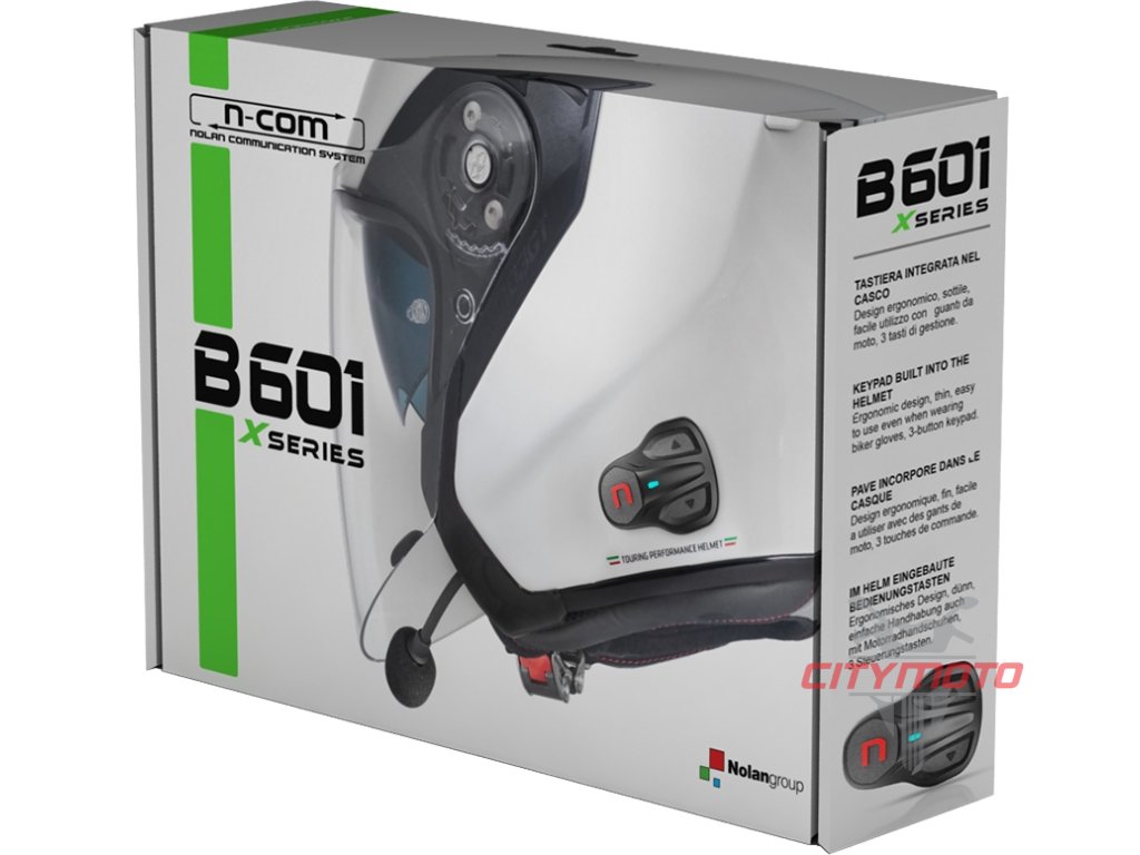 N-Com B601 X Series je zbrusu nová generace komunikačních systému přednastavených speciálně pro helmy X-Lite, interkomy jsou navrženy pro snadnější instalaci (X série nahrazuje předchozí K sérii) Interkom N-Com B601 X Series je ideální zařízení pro všechny, kteří si přejí cestovat na motocyklu s interkomem zabudovaným do helmy se skvělým výkonem založených na desetiletých zkušenostech značky N-Com. Možnost spárování telefonu přes Bluetooth, stejně tak GPS navigačních zařízení a MP3 přehrávače. Konverzace přes interkom se spolujezdcem a možnost sdílených hovorů.