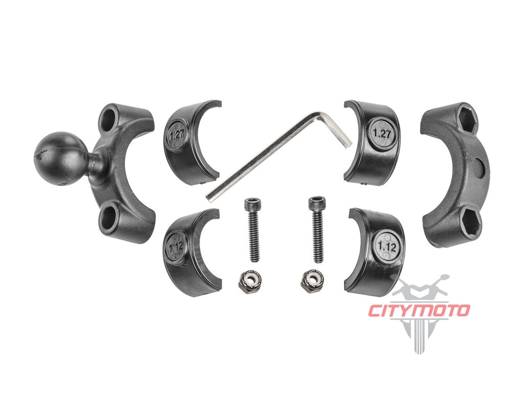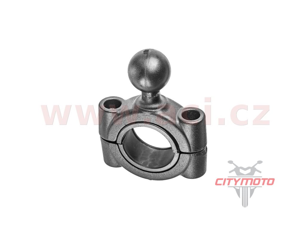 Objímka Torque na motorku nebo skútr, kolo, invalidní vozík nebo jednoduše jakoukoliv trubku o průměru 28,56-38,1 mm s kulovým čepem. Objímka má i nylonové vložky, které zabraňují náhodnému uvolnění při vysokých vibracích.
