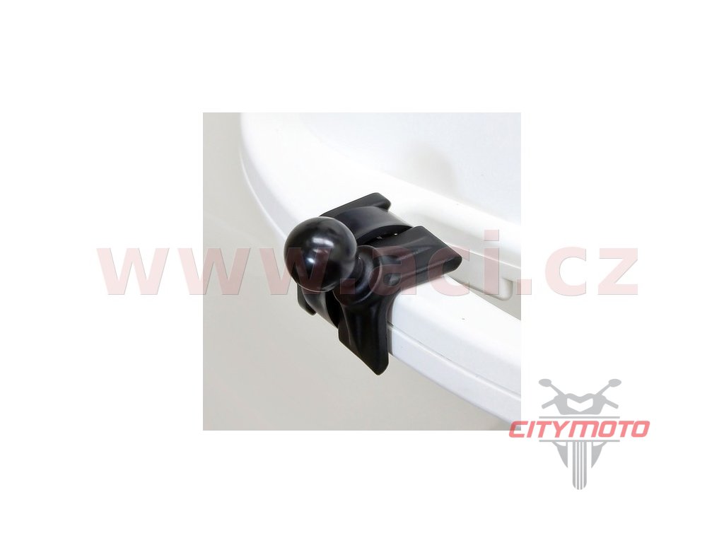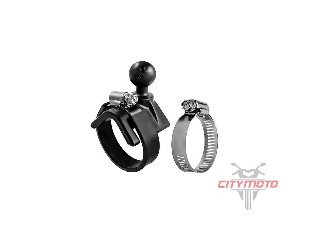 Úchyt s kulovým čepem, umístěným v pravém úhlu na základně ve tvaru V a s pojistným kovovým páskem na motorku nebo skútr, kolo, invalidní vozík nebo jednoduše jakoukoliv trubku o průměru 25,4 - 53,34 mm. Patentovaný kulový čep je vyroben z velmi kvalitní pryže tak, aby tlumil nárazy a vibrace, které by jinak byly přenášeny na upevněné elektronické zařízení.