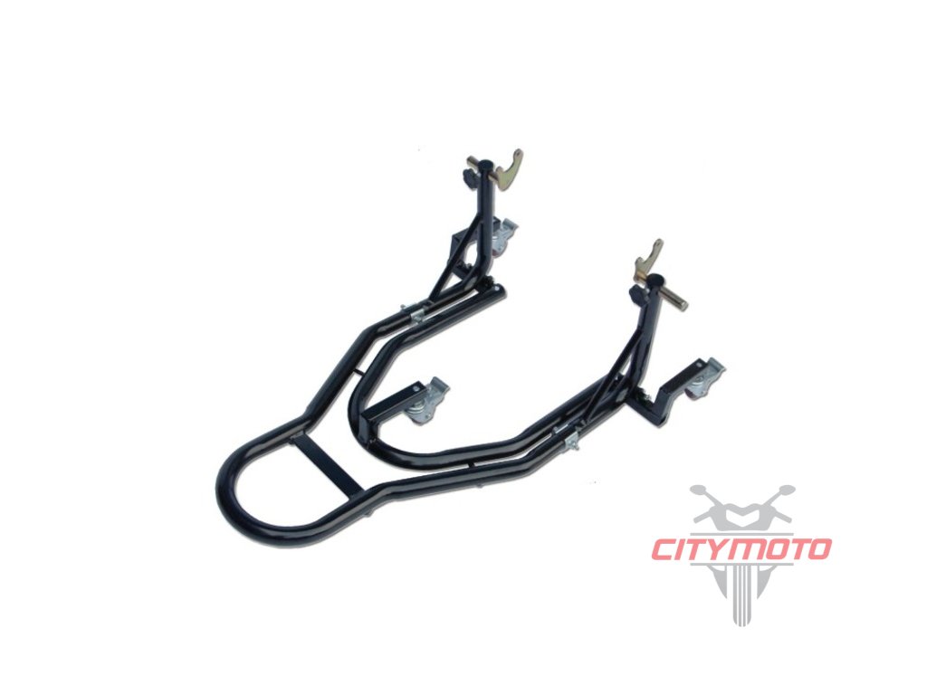 Zadní stojan, adaptéry do rolen součástí balení. Robustní a pevná konstrukce, rám z ocelových trubkových profilů o průměru 32 mm, nastavitelná šířka uchycení. Otočná kolečka pro lepší manipulaci s motocyklem. Specifikace: - nosnost: 320 kg - hmotnost: 9,5 kgDoplňkové parametry