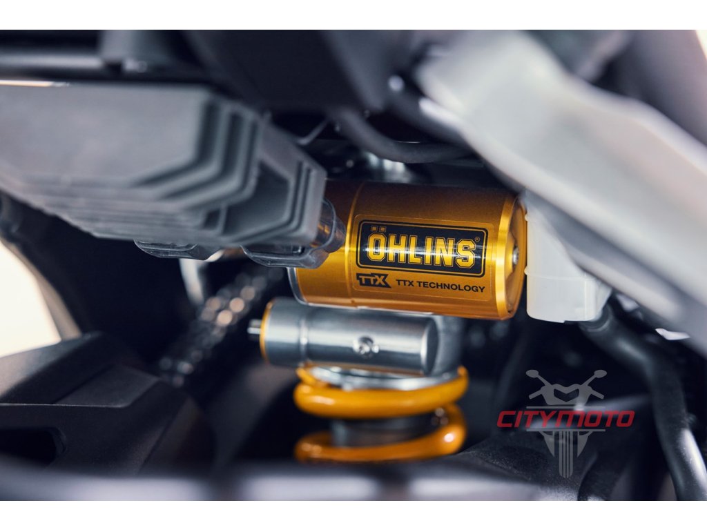 Upgrade odpruženíZadní tlumič Öhlins® TTX36 Pro-Link automaticky nastavuje předpětí pružiny; tlumení komprese a odskoku je plně nastavitelné.