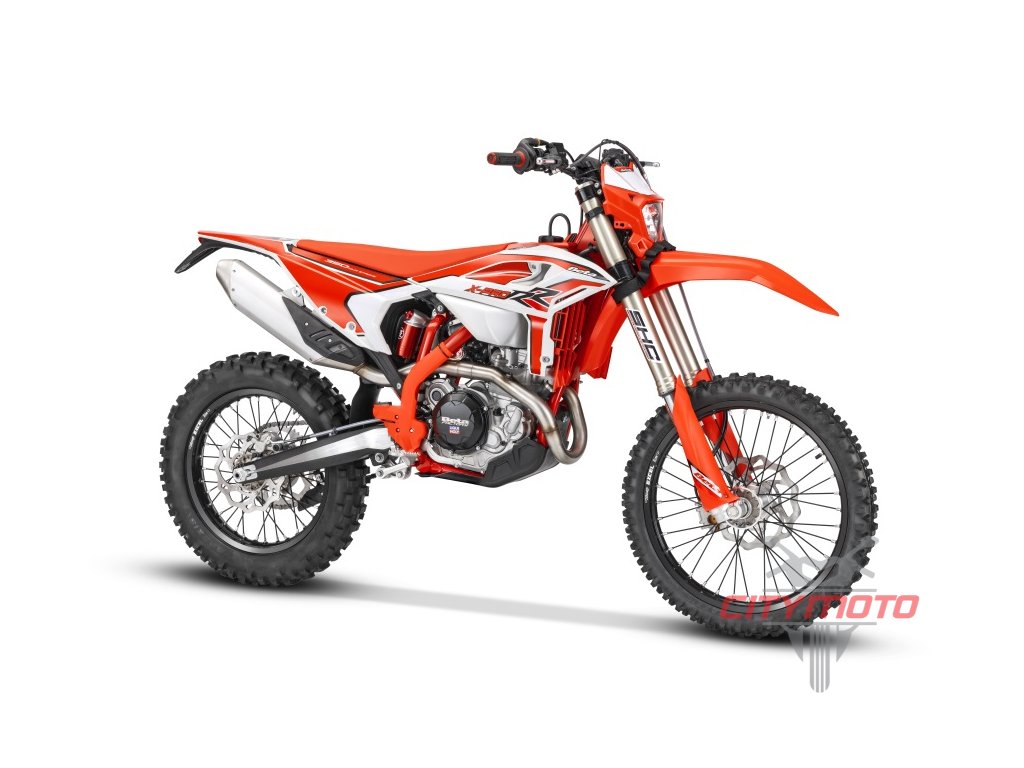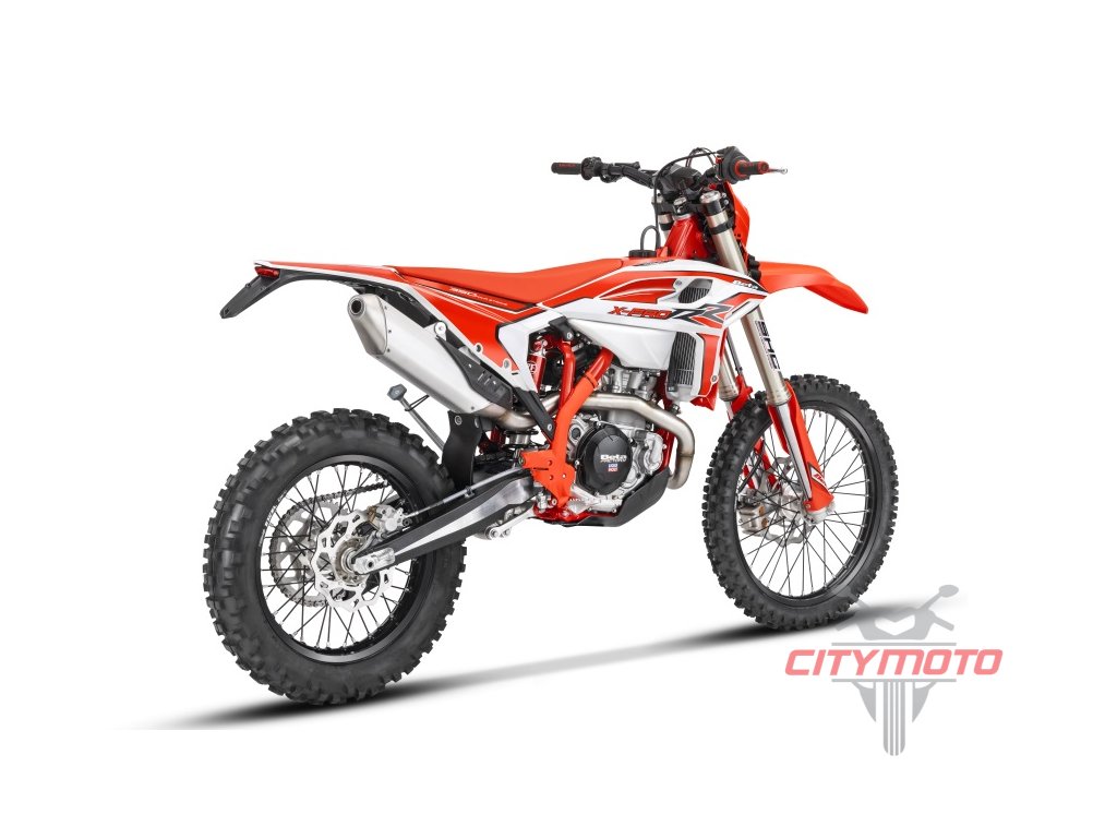 Navrženo výhradně pro ty nejnáročnější traily s funkcemi, které nenajdete u většiny ostatních enduro modelů, včetně nového rámu s o 20 mm nižší výškou sedla, zcela nové přední vidlice s jednou pružinou, odpružených klem řidítek, expanzní nádržkou chladicí kapaliny a také tahacího popruhu na předním blatníku. Završením seznamu změn jsou všechny nové plasty, které motocykl odliší od ostatních. Zcela nová přední vidlice ZF SHC je lehčí než u dřívějších standardních modelů RR díky použití jedné pružiny v pravé trubce vidlice, která obsahuje seřizovač předpětí, zatímco veškeré tlumení komprese a odskoku vidlice je umistěno v levé trubce. Tento design s jednou pružinou je ideální pro těžké enduro použití tím, že poskytuje jezdci při jízdě „zasazený“ pocit. Umožňuje také vidlici reagovat rychleji než jiné konstrukce díky menšímu celkovému tření. Přední vidlici doplňují odpružené klemy s isoelastickými vložkami od XTrig, tyto klemy snižují vibrace a únavu jezdce. Zadní tlumič je také nový s aktualizovaným nastavením, které odpovídají zcela nové přední vidlici SHC. Pro zvýšení jízdních vlastností kola byla výška sedla snížena o 20 mm, aby se snížilo těžiště a poskytlo jezdci lepší postavení, když jde do tuhého. Novinkou je také tahací popruh pro případ, že je nutné přední kolo z extrémní situace zvednout nebo motocykl popotáhnout v prudkém výjezdu. Nový rám, byl převzat z modelů RR Racing MY24 a RX. Tento nový rám má přepracovaný krk řízení, který je silnější než u předchozích modelů a poskytuje lepší kontrolu díky menší flexibilitě. Spolu s novým rámem byl přidán nový hlavní válec zadní brzdy Nissin, který poskytuje lepší výkon zadních brzd. Tato nová nádržka pojme větší objem kapaliny, která pomáhá ochlazovat systém při extrémním brzdění. Modely RR X-Pro mají svůj osobitý vzhled s novými plasty. Nově navržená maska předních světlometů, nové elegantní panely nádrže a zakončené novým zadním blatníkem. Nová grafika završuje úžasný vzhled této řady.