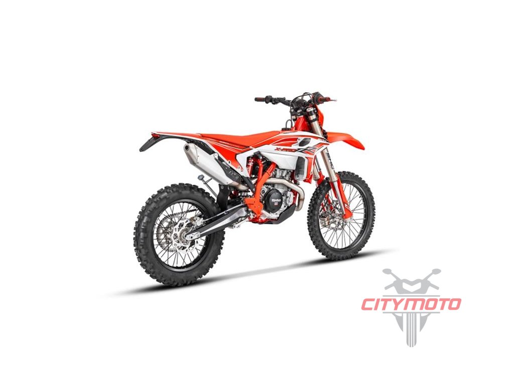 Navrženo výhradně pro ty nejnáročnější traily s funkcemi, které nenajdete u většiny ostatních enduro modelů, včetně nového rámu s o 20 mm nižší výškou sedla, zcela nové přední vidlice s jednou pružinou, odpružených klem řidítek, expanzní nádržkou chladicí kapaliny a také tahacího popruhu na předním blatníku. Završením seznamu změn jsou všechny nové plasty, které motocykl odliší od ostatních. Zcela nová přední vidlice ZF SHC je lehčí než u dřívějších standardních modelů RR díky použití jedné pružiny v pravé trubce vidlice, která obsahuje seřizovač předpětí, zatímco veškeré tlumení komprese a odskoku vidlice je umistěno v levé trubce. Tento design s jednou pružinou je ideální pro těžké enduro použití tím, že poskytuje jezdci při jízdě „zasazený“ pocit. Umožňuje také vidlici reagovat rychleji než jiné konstrukce díky menšímu celkovému tření. Přední vidlici doplňují odpružené klemy s isoelastickými vložkami od XTrig, tyto klemy snižují vibrace a únavu jezdce. Zadní tlumič je také nový s aktualizovaným nastavením, které odpovídají zcela nové přední vidlici SHC. Pro zvýšení jízdních vlastností kola byla výška sedla snížena o 20 mm, aby se snížilo těžiště a poskytlo jezdci lepší postavení, když jde do tuhého. Novinkou je také tahací popruh pro případ, že je nutné přední kolo z extrémní situace zvednout nebo motocykl popotáhnout v prudkém výjezdu. Nový rám, byl převzat z modelů RR Racing MY24 a RX. Tento nový rám má přepracovaný krk řízení, který je silnější než u předchozích modelů a poskytuje lepší kontrolu díky menší flexibilitě. Spolu s novým rámem byl přidán nový hlavní válec zadní brzdy Nissin, který poskytuje lepší výkon zadních brzd. Tato nová nádržka pojme větší objem kapaliny, která pomáhá ochlazovat systém při extrémním brzdění. Modely RR X-Pro mají svůj osobitý vzhled s novými plasty. Nově navržená maska předních světlometů, nové elegantní panely nádrže a zakončené novým zadním blatníkem. Nová grafika završuje úžasný vzhled této řady.
