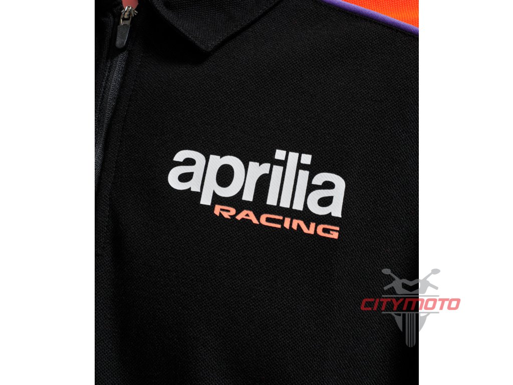 Většina oblečení je černá, s červenými akcenty dodávají celku sportovní, závodní charakter. To je posíleno logem Aprilia Racing a četnými logy od oficiálních sponzorů. Kolekce Aprilia Racing Teamwear je tak ideální volbou pro fanoušky závodění.