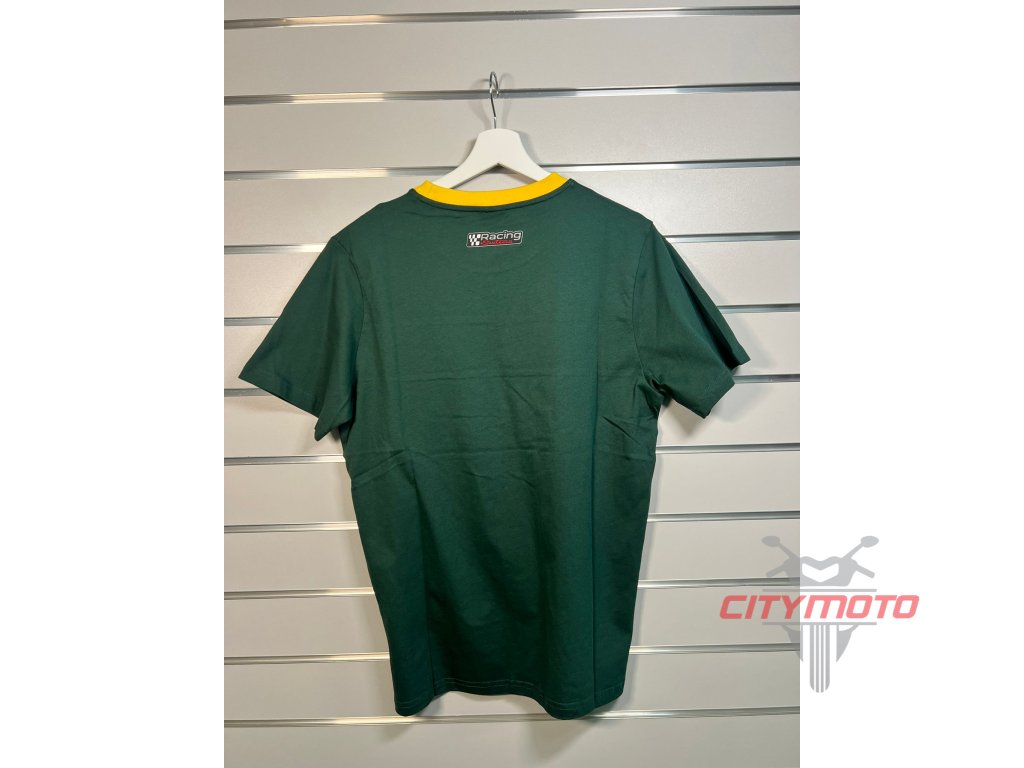 Pánské tričko Vespa Racing Sixties v zelené barvě, žlutý lem kolem krku. Vyšité logo VESPA.