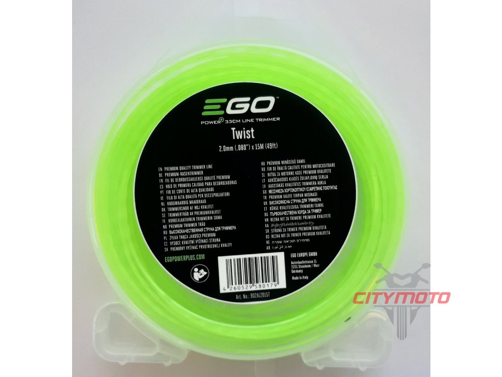 Dobrá vyžínací struna do vyžínače by se neměla samovolně během práce trhat nebo lámat, ale zase by měla disponovat optimální elesticitou tak, aby se mohla automaticky ze strunové hlavy odvíjet a nezatěžovala nadměrně pohon vyžínače/křovinořezu. Toto hrozí při používání neoriginálních či neznačkových strun. Originální vyžínací struny EGO jsou vyrobeny z kvalitních monofilamentových materiálů na bázi silonu, tzn., že struna má homogenní strukturu, je povrchově velmi kluzká, nevsakuje tekutiny a proto vyniká vysokou otěruvzdorností a odolností. Na výběr máme strunu jak s kulatým průřezem, tak i tzv. krouceným "TWIST" průřezem. Kroucená vyžínací struna vyniká sníženou aerodynamickou hlučností. Naopak kulatá struna disponuje delší životností a vyšší odolností vůči zlomení. Díky použitým materiálům je životnost strun EGO až o 30% delší, než je tomu u běžných vyžínacích strun. Na výběr jsou různé průměry a délky.