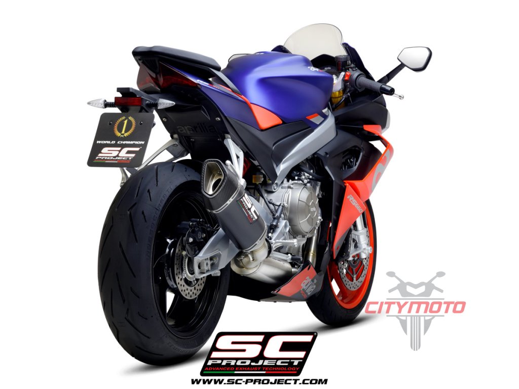 Abyste se nevzdali výkonu a nezaměnitelného zvuku kompletního systému „Trofeo“ s tlumičem SC1-R, oddělení výzkumu a vývoje SC-Project vyvinulo pro vaši Aprilii RS 660 systém schválený EURO 5. Celý systém je vybaven předkomorou s pevným designem, v souladu s jedinečným stylem této Aprilie. Díky katalyzátoru vloženému do předkomory je možné získat nejlepší výkon vždy v souladu s evropskými předpisy pro pouliční použití. Produkt je k dispozici s tlumičem SC1-R z titanu nebo uhlíkových vláken a byl vyroben se stejnou přesností a technickými vlastnostmi jako závodní systém: T.I.G. svařování prováděné v kontrolovaném prostředí a pouzdra CNC obráběná z masivu, které zaručují dokonalé spoje. Vyrobeno výhradně z nerezové oceli AISI 304, bylo navrženo pro použití originálních lambda sond. Sada je obohacena o speciální ochranu z uhlíkových vláken a jednosedadlový držák z černého eloxovaného hliníku.