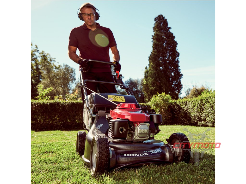 Honda HRH 536 HX: profesionální motorová sekačka s hydrostatickým pojezdem poháněným kardanovou hřídelí, s motorem "profi" řady GXV, s Roto-stopem®, na podvozku odlitém z hliníkové slitiny se záběrem sečení 53 cm, hliníkovými koly na průmyslových ložiscích a ovládací rukojetí namontována k podvozku sekačky s pomocnou vzpěrou a zesilovacím ramínkem.