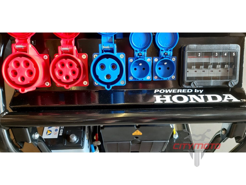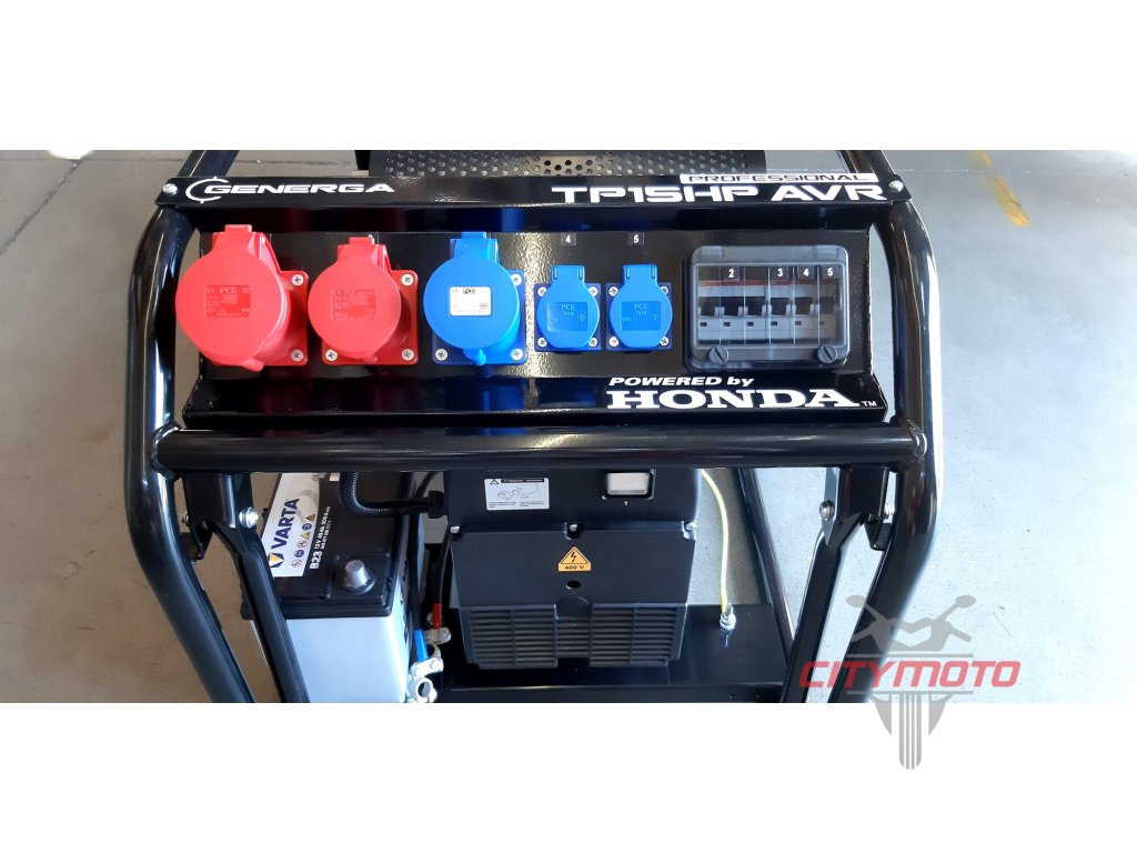 Tato robustní, benzínová elektrocentrála třífázového napětí je svým výkonem 12,0 kVA (3 f.) / 6kVA (1 f.) určena převážně "profíkům" pro napájení celého spektra třífázových elektrospotřebičů a je přímo určena převážně řemeslníkům a profesionálům z oblasti stavebnictví a opravárenství. Svým výkonem se hodí do pojízdných autodílen, opravárenských vozů pro práci v terénu nebo na staveniště při zakládání staveb, údržbu silnic a dálnic a pod. Celá soustava je uložena na pružných silentblocích ve vyztuženém rámu, svařeném z ocelových trubek o průměru 30 mm. Ten zajišťuje mimořádnou ochranu soustrojí proti případnému poškození. Jako palivová nádrž slouží standardní 20 l kanystr, uložený v rámu stroje, který lze snadno vyjmout pro případné tankování. Vzhledem ke své hmotnosti je elektrocentrála opatřena transportním kolovým podvozkem. Proto, aby alternátor produkoval napětí 400V / 230V / 50Hz, je motor opatřen automatickým, mechanickým regulátorem otáček tak, aby při jakémkoliv odběru proudy byly otáčky motoru konstantní ve výši 3000 ot./min. Elektrický výkon elektrocentrály v úrovni "12 kilo" vyžaduje "pořádný" a silný, spolehlivý motor. Ten je zde ve formě benzínového vidlicového dvouválce GX630, který patří k nejvýkonnějším pohonným jednotkám na světě v kategorii 22 HP. Elektrocentrála je opatřena zásuvkovým panelem s přehledně rozmístěnými zásuvkami 1x CEE (32A 400V - tepelný jistič 20A samostatně mimo panel), 1x CEE (16A 400V - jistič 16A), 1x CEE (32A 230V - jistič 32A) a 2x CEE (16A 230V - jistič 10A). Vedle zásuvek je umístěn krytý panel s jističi jak 400V, tak i 230V zásuvek. Ovládání elektrocentrály je velice snadné a jednoduché. Stačí natankovat, elektrocentrálu postavit na vodorovnou plochu, zkontrolovat olejovou náplň motoru, nastartovat otočením klíčku zapalování, počkat pár vteřin na ustálení chodu motoru a do příslušné zásuvky připojit napájený spotřebič. Elektrocentrála splňuje veškeré nároky na elektrickou bezpečnost a je opatřena ochrannými prvky jako je ochrana motoru proti úniku oleje nebo alternátoru proti přetížení. Robustní a pevná konstrukce rámu se nekroutí a spolehlivě tlumí působení vibrací od soustrojí na podklad. Snižuje se tak hlučnost elektrocentrály a práce je potom příjemnější. Elektrocentrálu lza za příplatek vybavit zemnícím kolíkem, a nebo automatikou startu AMF. Údržba elektrocentrály je zcela nenáročná a spočívá v základní údržbě benzínového motoru.